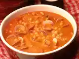 Ingredientes: Garbanzos (remojados durante unas 8 h) 250 g Almejas o chirlas 500 g Cucharadita de pimentón dulce 1 Pimiento rojo, sin semillas y en trocitos 1...