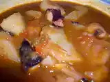 Ingredientes: 1 pulpo. 2 zanahorias. 8 patatas. 1 lata de guisantes al natural. 1/2 cebolla. 2 dientes de ajo. 1 lata de salsa de tomate natural. 1 sobre de...
