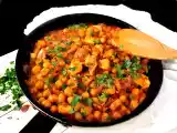 Ingredientes: 400 gr de garbanzos cocidos 300 gr de tomate frito 300 gr de rejos cocidos cortados en rodajitas 1 cebolla pequeña cortada en brunoise 3 dientes de...