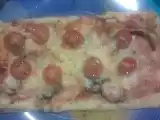 Ingredientes: -1 Lámina de hojaldre fresca -Tomates cherry -Jamón de york -Champiñones -1/2 cebolla -Chorrito de nata para cocinar -Chorrito de tomate frito...