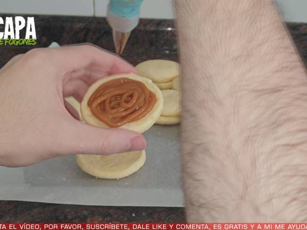 Por último rellenamos nuestros alfajores con dulce de leche.