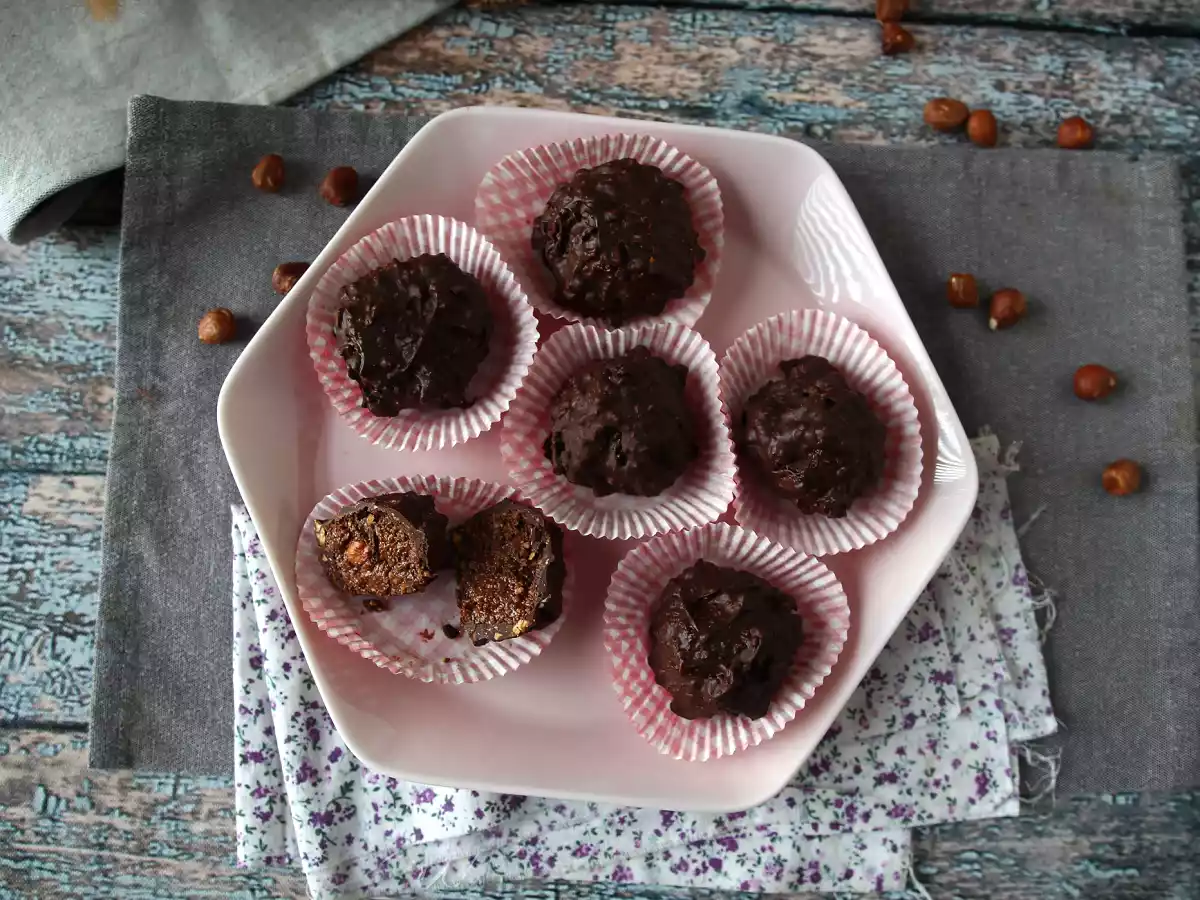 Tomar una cucharada sopera de la mezcla. Colocar una avellana tostada entera en el centro de la masa y formar una bola con las manos.