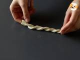 Coge por ambos extremos una de las tiras y retuércela sobre sí misma para darle forma en espiral.