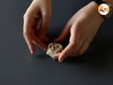 Extiende la crema de galletas Lotus sobre la mitad de la superficie de tu masa de hojaldre. Doblar el hojaldre por la mitad, tapando la crema.