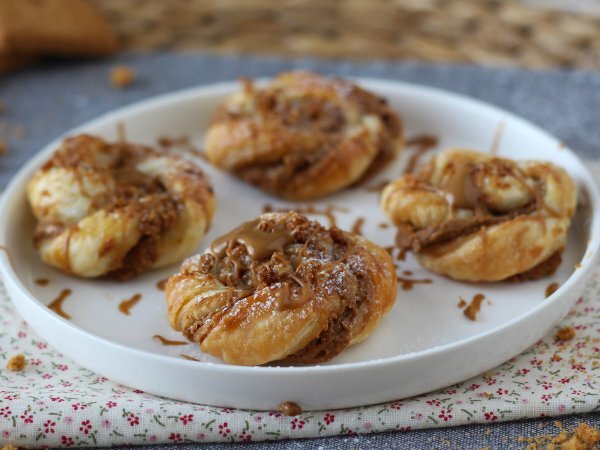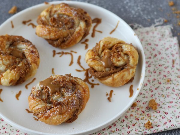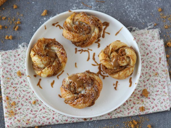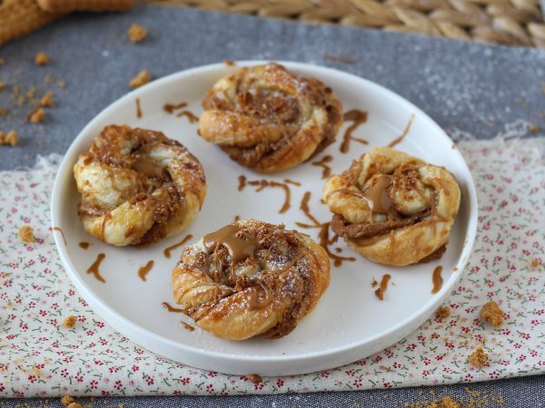 Caracolas de hojaldre con crema de untar lotus, súper fáciles y rápidas