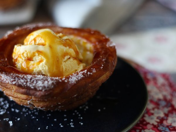 Rellenar las cestas de churros con una bola de helado de vainilla y caramelo líquido por encima. Puedes elegir los toppins y rellenos que más te gusten.