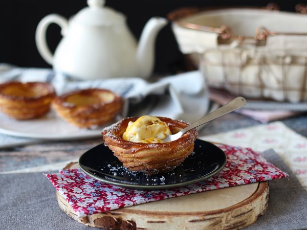 Hay que usar la masa aún caliente para formar las cestitas. De otra forma la masa se enfriará, se endurecerá y será mucho más difícil manipularla.