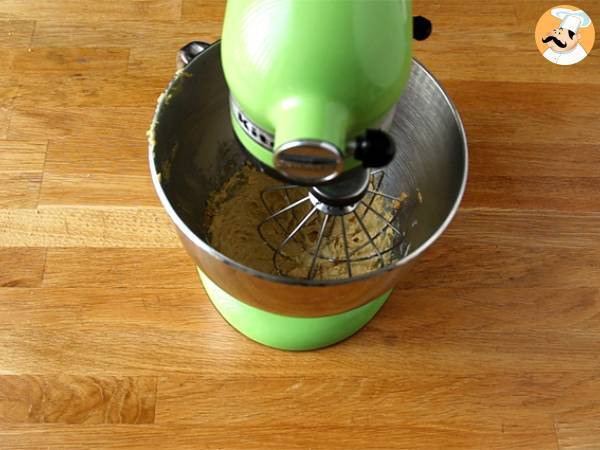 Añade la harina, la levadura química y el azúcar moreno.