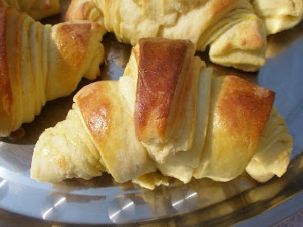 Croissant de mantequilla y miel AnteriorSiguiente MeriendaFácil50 min1061 Kcal Enviar esta receta a un amigo Imprimir esta página Preguntar al autor Publicar la foto de esta receta Disfrute de su mañana con esta receta. Ingredientes 4 1 kg. harina, 2 huevos, 1 cucharada de miel, 25 g levadura prensada, 2 cucharadas de azúcar, 1 pachete de manteqilla o margarina, 1 yema, 2 cucharadas de azúcar, 1 huevo para pintar. Costo estimado: 2.29Euros€ (0.57€/porción)