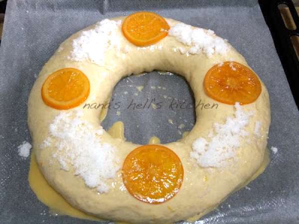 Roscón de reyes AnteriorSiguiente MeriendaFácil40 min Enviar esta receta a un amigo Imprimir esta página Preguntar al autor Publicar la foto de esta receta Ingredientes 2 Para la masa madre: 100 g de leche 100 g de harina 4 g de levadura seca de panadería Para la masa: 80 g de leche 80 g de azúcar Toda la masa madre anterior Ralladura de la piel de 1 naranja y 1 limón 1 cda. de agua de azahar 1 huevo 50 g de mantequilla en pomada 1 pizca de sal 280 g de harina 2 g de levadura seca de panadería Terminación: 1 huevo batido Naranja confitada Azúcar Anís Azúcar glass