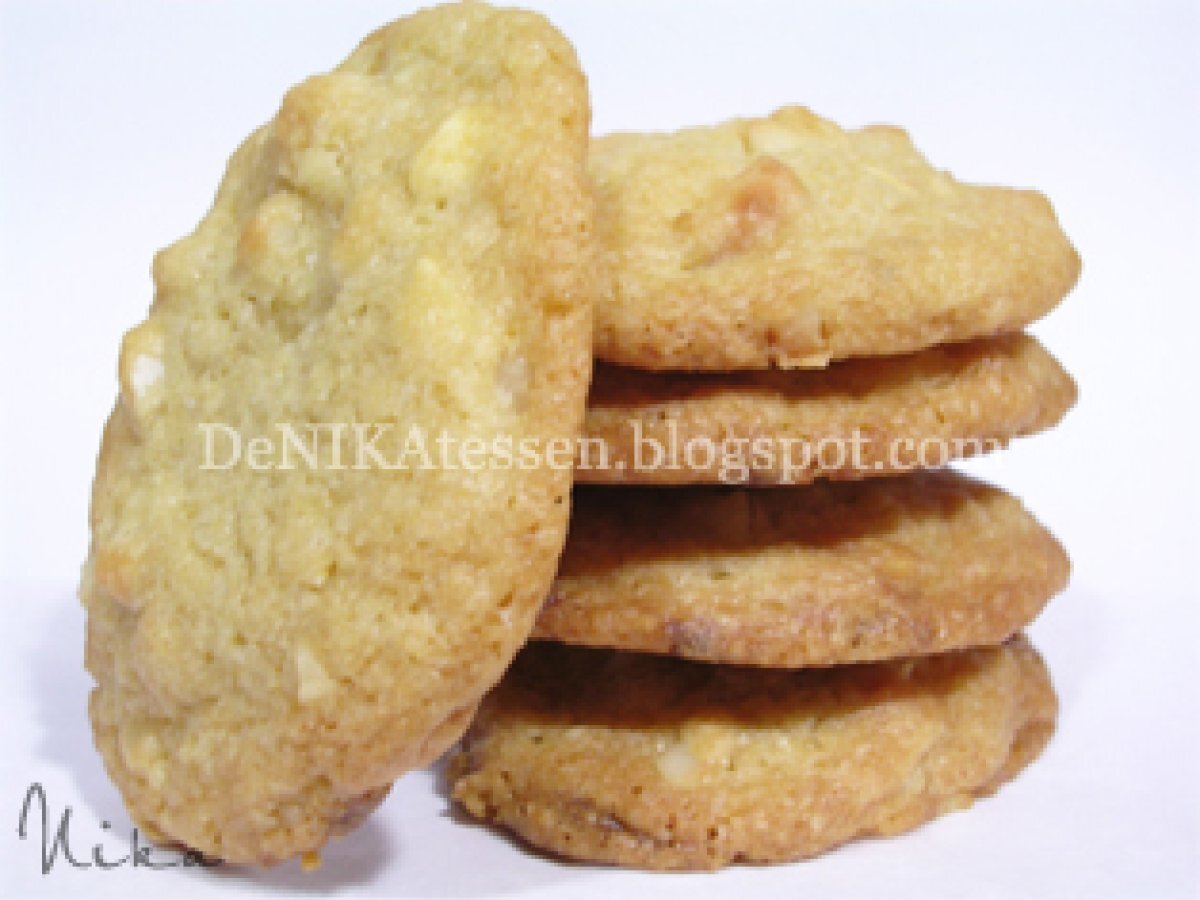 Galletas de chocolate blanco y macadamia MeriendaFácil50 min391 Kcal Enviar esta receta a un amigo Imprimir esta página Preguntar al autor Publicar la foto de esta receta Ingredientes 5 1 ¼ cup de harina de trigo ½ teaspoon de bicarbonato sódico ½ teaspoon de sal ½ cup de mantequilla ½ cup de azúcar blanco ¼ cup de azúcar moreno claro 1 teaspoon de extracto natural de vainilla 1 huevo mediano 150 g de chocolate blanco 125 g de nueces de Macadamia crudas Costo estimado: 4.31Euros€ (0.86€/porción)