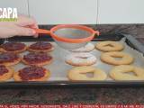 Ahora espolvoreamos un poco de azúcar glas por encima de las galletas que tienen el agujero con forma de corazón.