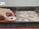 Ahora le damos la vuelta a las galletas que no tienen agujero y le ponemos mermelada de fresa por encima.
