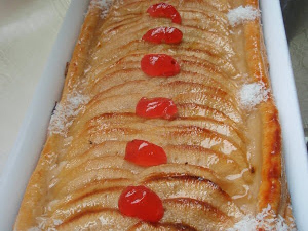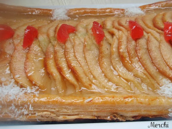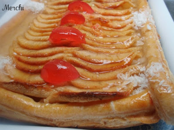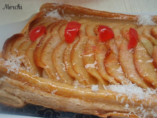 Hojaldre de manzana AnteriorSiguiente MeriendaFácil45 min782 Kcal Enviar esta receta a un amigo Imprimir esta página Preguntar al autor Publicar la foto de esta receta ¡Un postre qué vale la pena dêtre iniciado! Ingredientes 4 1 lámina de hojaldre 3 manzanas tipo Golden 3 yemas de huevo 100 g de azúcar 1 rama de canela 1 cucharadita de vainilla 60 g de maicena 1/2 l de leche cerezas en almíbar Almíbar Licor de manzana Coco rallado
