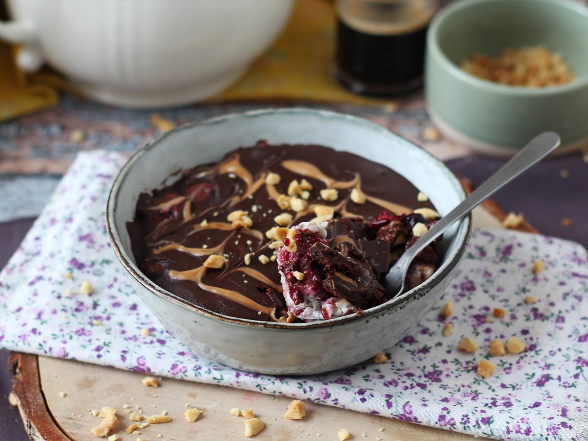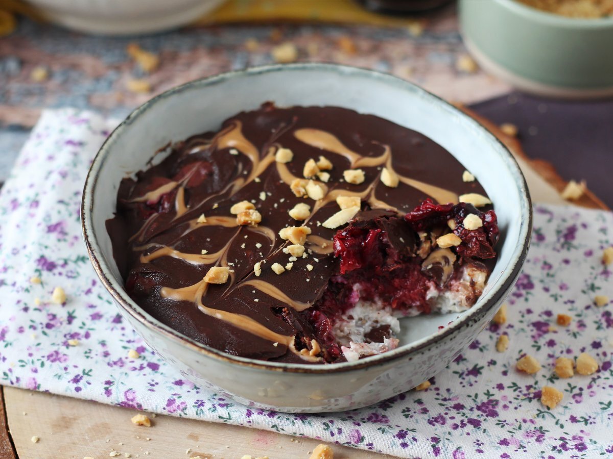 Overnight oats con frutos rojos y chocolate, ¡un desayuno saludable y delicioso!