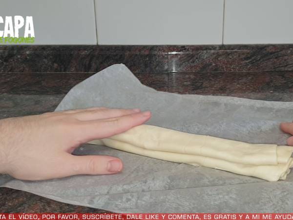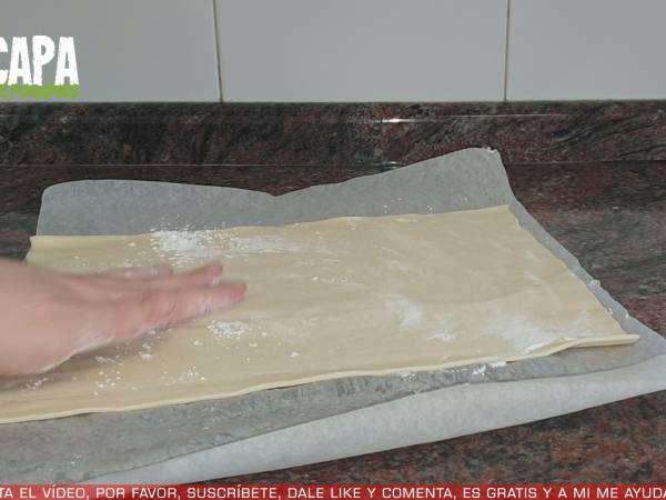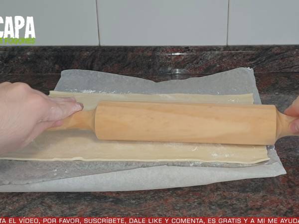 Ahora con la ayuda de un rodillo extendemos el hojaldre un poquito.