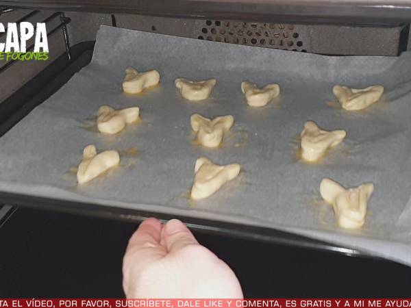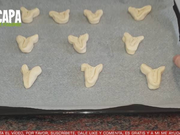 A continuación metemos las palmeritas en el horno previamente precalentado a 190º centígrados durante unos 15 minutos aproximadamente o hasta que veáis que van cogiendo un bonito color dorado.