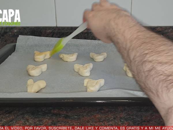 Ahora batimos un huevo y lo untamos sobre las palmeritas.