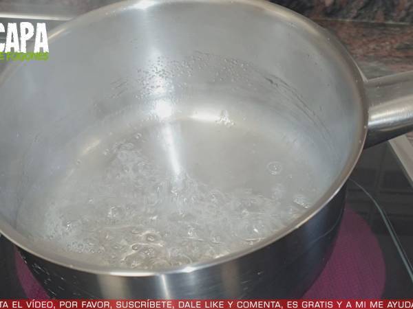 Después vamos a preparar el almíbar, para ello, añadimos 100 gramos de azúcar y 50 mililitros de agua y dejaremos que hierva durante un minuto y después apartamos del fuego.