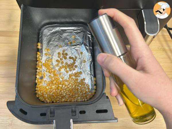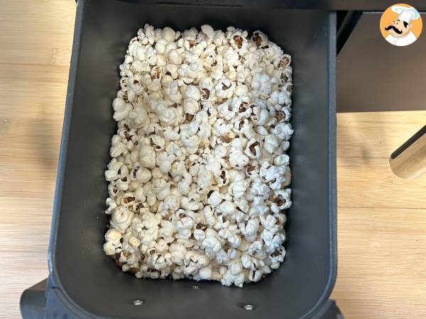 Al final de la cocción, las palomitas pueden seguir reventando, así que deja la freidora de aire cerrada durante un par de minutos más.
