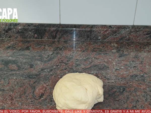 Después añadimos la masa a la superficie de trabajo y amasamos hasta conseguir una masa lisa y sin grumos.