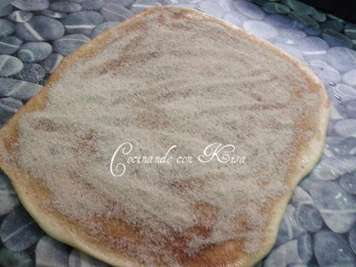 Pan dulce de canela (kitchenaid y horno tradicional) AnteriorSiguiente MeriendaFácil55 min928 Kcal Enviar esta receta a un amigo Imprimir esta página Preguntar al autor Publicar la foto de esta receta Ingredientes 4 Para la masa: 235 g de leche semidesnatada tibia 450 g de harina de fuerza 6 g de sal 55 g de mantequilla en pomada 55 g de azúcar 20 g de levadura fresca 1 huevo 10 g de aceite de oliva Para el relleno: 50 g de mantequilla 200 g de azúcar 2 cucharaditas de canela ½ cucharadita de nuez moscada Costo estimado: 2.87Euros€ (0.72€/porción)