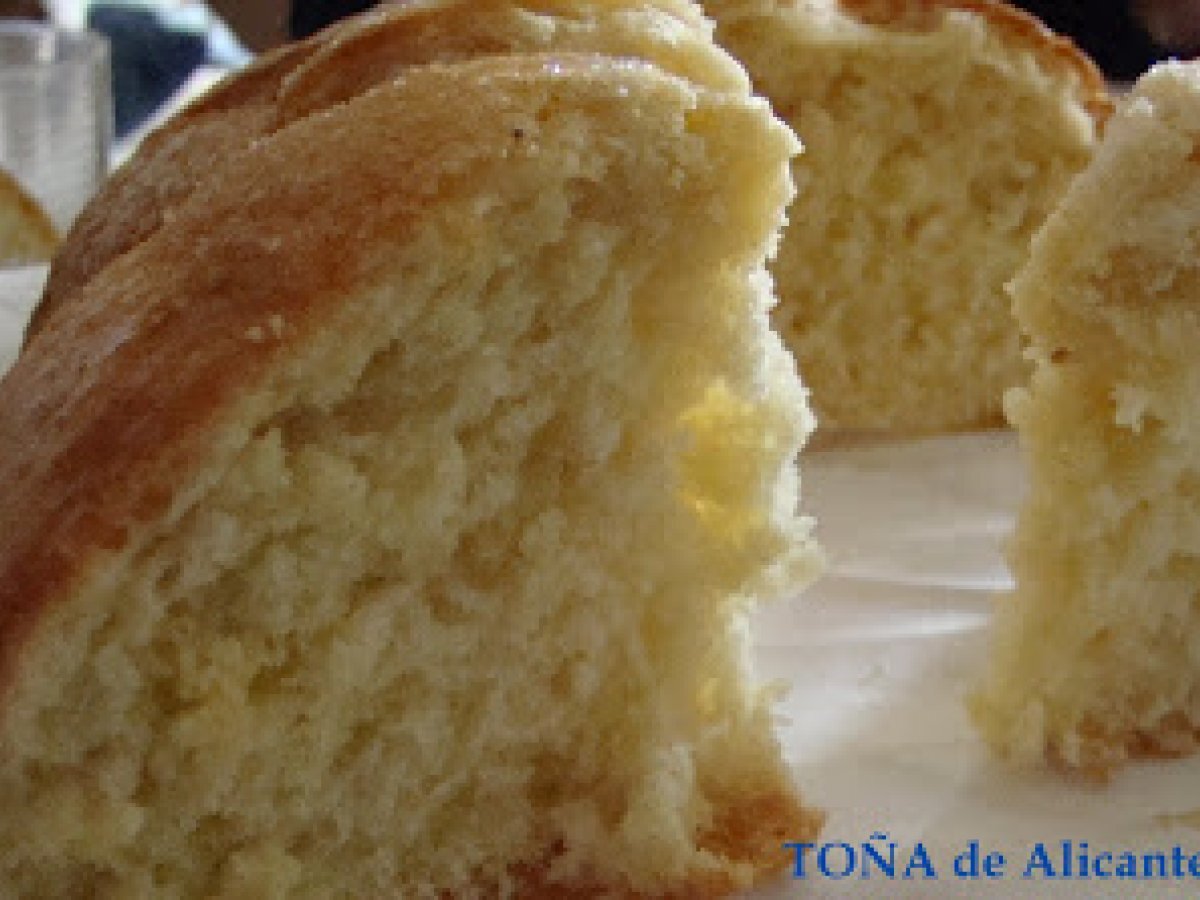 - Ponemos la leche templada un poco y desliamos la levadura,añadimos los huevos muy poco batidos, la mantequilla,el azúcar y la harina tamizada. Primero mezclamos y después el amasamos. La textura de la masa es muy blanda. Ponemos la masa en un bol grande tapada con plástico de cocina y dejamos en un lugar sin corrientes tres horas. Como lleva azúcar le cuesta levar, si no se espera sus tiempos no estará igual de buena.