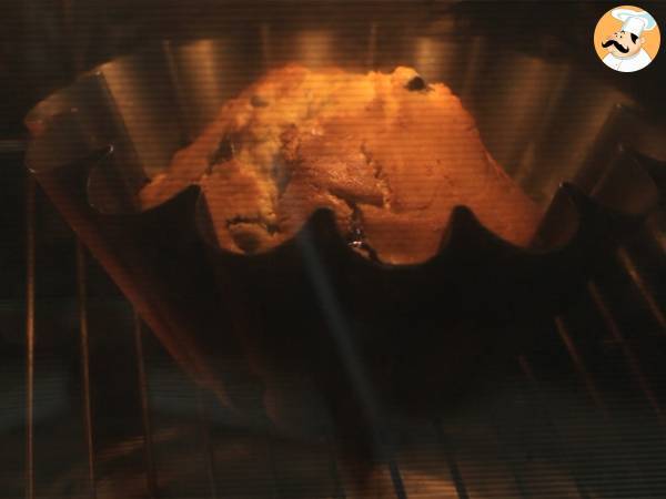 Vierte la masa en un molde engrasado con mantequilla y hornera en un horno precalentado a 180°C durante 45 minutos. Para comprobar el punto de cocción te recomendamos hacer la prueba del palillo. Con un cuchillo o una brocheta de madera pincha el centro del bizcocho, si el palillo sale limpio es que está listo.