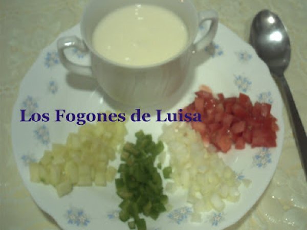 Ajo blanco, sin almendras OtroMedio40 min Enviar esta receta a un amigo Imprimir esta página Preguntar al autor Publicar la foto de esta receta Ingredientes 4 1 ajo un trozo de miga de pan 1 huevo 1 vaso de aceite de oliva o uno y medio agua sal , vinagre pepino , cebolla , tomate y pimiento verde