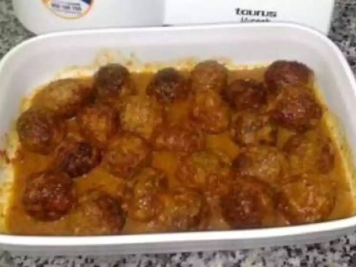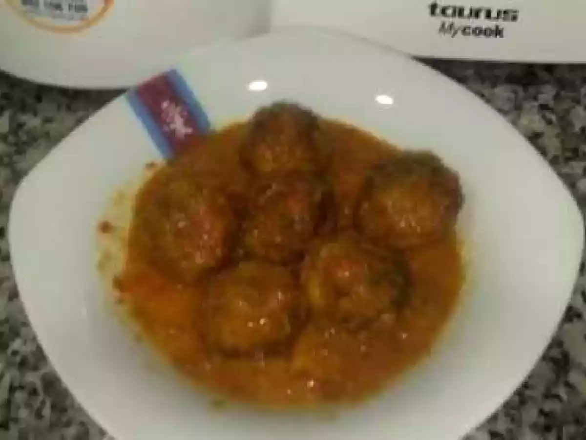 Albondigas de pavo y pollo en la mycook AnteriorSiguiente OtroMedio45 min Enviar esta receta a un amigo Imprimir esta página Preguntar al autor Publicar la foto de esta receta Ingredientes 8 ingredientes para la masa de las albóndigas: 600gr de carne picada de pavo y pollo 1 huevo 50gr de miga de pan perejil picado al gusto 2 ajos piñones al gusto sal pimienta nuez moscada 80gr de vino blanco( son mas gustosas) ó leche ingredientes para la salsa: 50gr de aceite de girasol 100gr de cebolla 1 diente de ajo 70 gr de pimiento rojo 70gr de pimiento verde 100gr de tomate triturado 100gr de vino blanco media pastilla de caldo de pollo 1 cucharadita de hiervas provenzales pimienta sal 1 cucharadita de azúcar