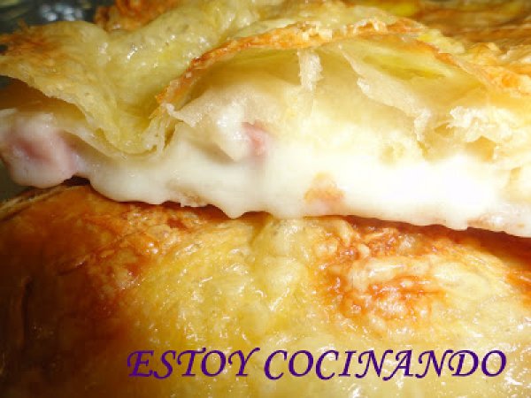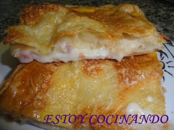 Bechamela, hojaldres rellenos de jamón cocido y queso AnteriorSiguiente OtroFácil1 hora2827 Kcal Enviar esta receta a un amigo Imprimir esta página Preguntar al autor Publicar la foto de esta receta Ingredientes 1 Dos bases de hojaldre Jamón york en trocitos Queso en lonchas de mozarella Bechamel Huevo batido