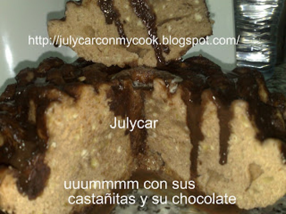 Bizcocho de castañas con chocolate al microondas light AnteriorSiguiente OtroMedio25 min Enviar esta receta a un amigo Imprimir esta página Preguntar al autor Publicar la foto de esta receta Unos ingresos sabrosos perfeccionados para la merienda. Ingredientes 5 100 g de castañas peladas 5 huevos 1 yogur natural desnatado 300 g de harina reposteria 2 y 1/2 cubilete de edulcorante (20 g) 20 g de chocolate en polvo sin azucar 1 sobre de levadura unas onzas de chocolate postres y un poco de leche desnatada mantequilla para untar el molde