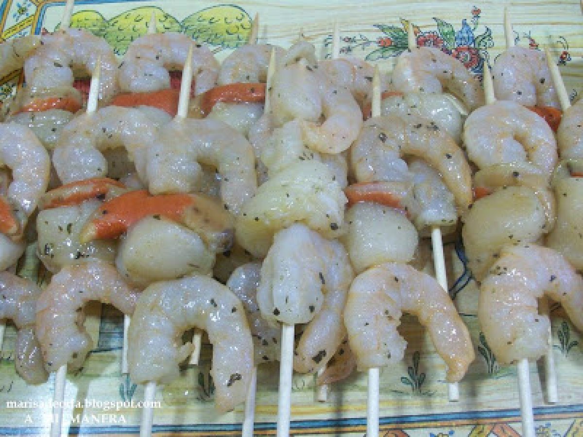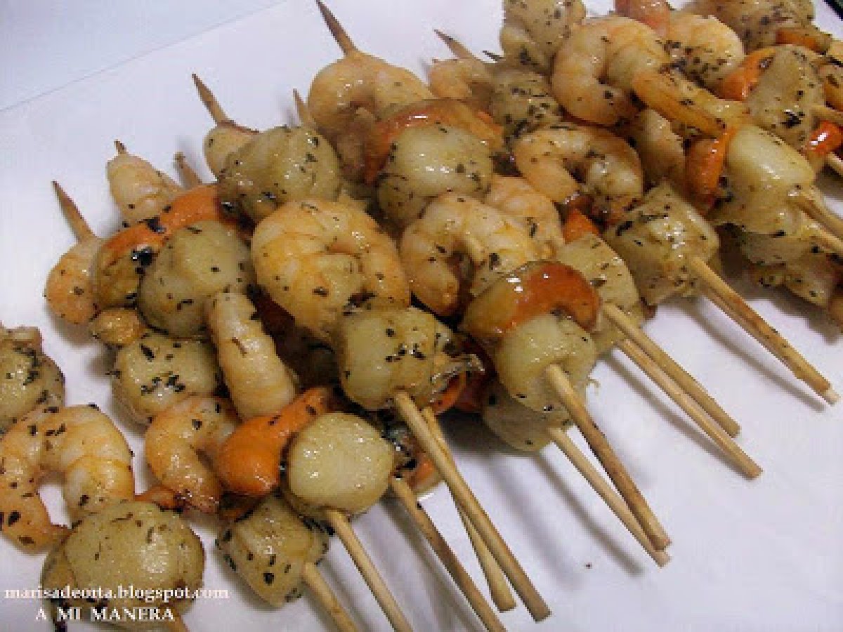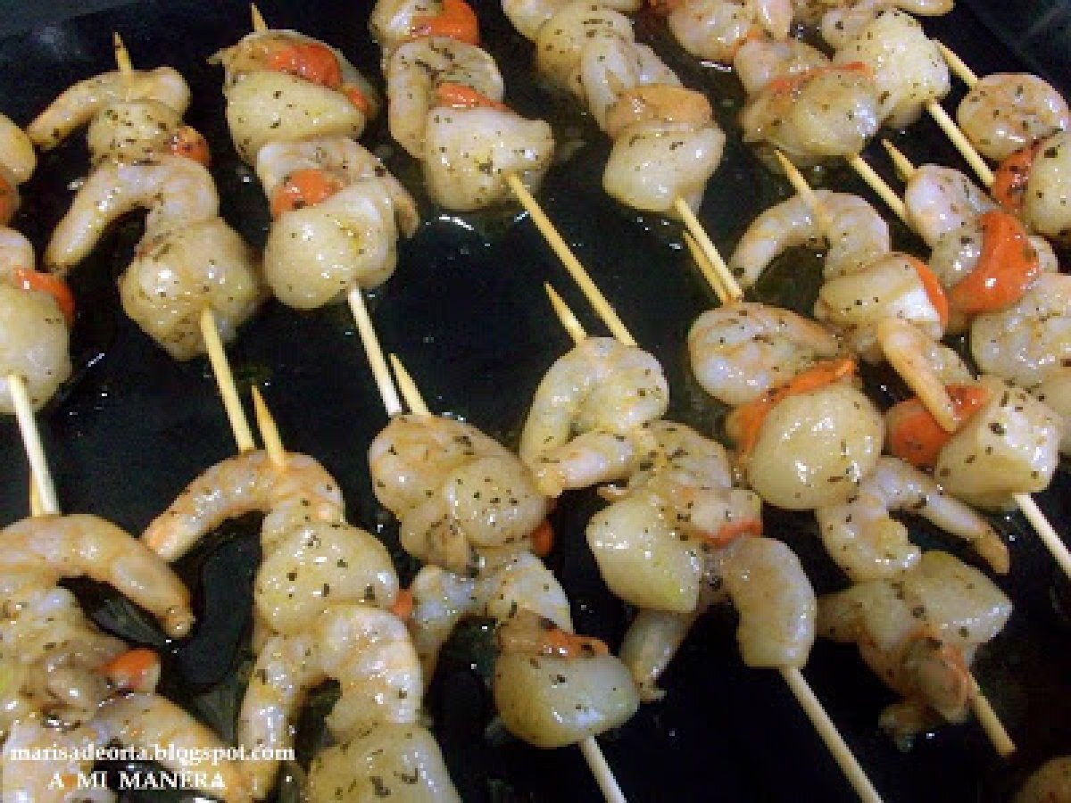 Brochetas de langostinos y vieiras AnteriorSiguiente OtroFácil1 h 15 m Enviar esta receta a un amigo Imprimir esta página Preguntar al autor Publicar la foto de esta receta Ingredientes 14 25 vieiras limpias 50 langostinos pelados Aceite Sal Albahaca molida Pimienta molida Cayena molida Brochetas