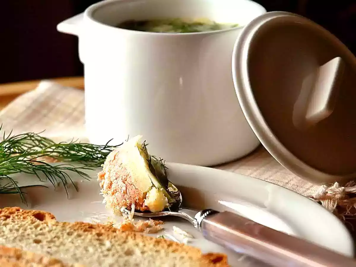 Cangrejo en pote o paté de cangrejo AnteriorSiguiente OtroMedio50 min Enviar esta receta a un amigo Imprimir esta página Preguntar al autor Publicar la foto de esta receta Ingredientes 3 40 g de carne oscura o corales 110 g de carne blanca 1 cayenita Semillas de hinojo 1 buen chorretón de zumo de limón o lima 2 buenos pellizcos de nuez moscada 100 g de mantequilla Sal al gusto