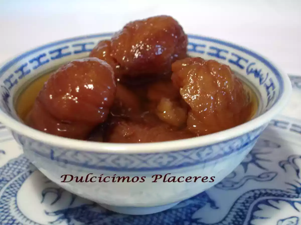 Castañas en almibar OtroFácil45 min1514 Kcal Enviar esta receta a un amigo Imprimir esta página Preguntar al autor Publicar la foto de esta receta Ingredientes 3 1 kg de castañas 800 g de azúcar 1/2 l de agua 1 palo de canela Canela en polvo Agua para escaldarlas