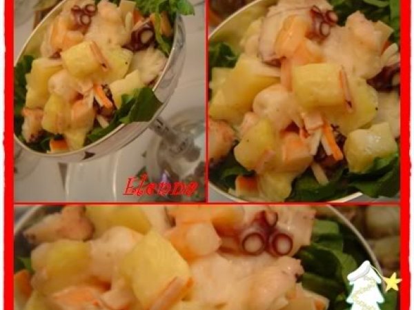 Cóctel hawaiano AnteriorSiguiente OtroFácil15 min966 Kcal Enviar esta receta a un amigo Imprimir esta página Preguntar al autor Publicar la foto de esta receta Un cóctel de infierno, a saborear sin vacilar! Ingredientes 3 18 gambas peladas 6 palitos de cangrejo 3 patas de pulpo cocido 3 rodajas de piña Mahonesa al gusto Varias hojas de lechuga