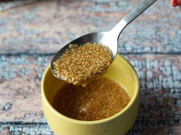 Verter las semillas de lino trituradas en un cuenco y añadir el agua.