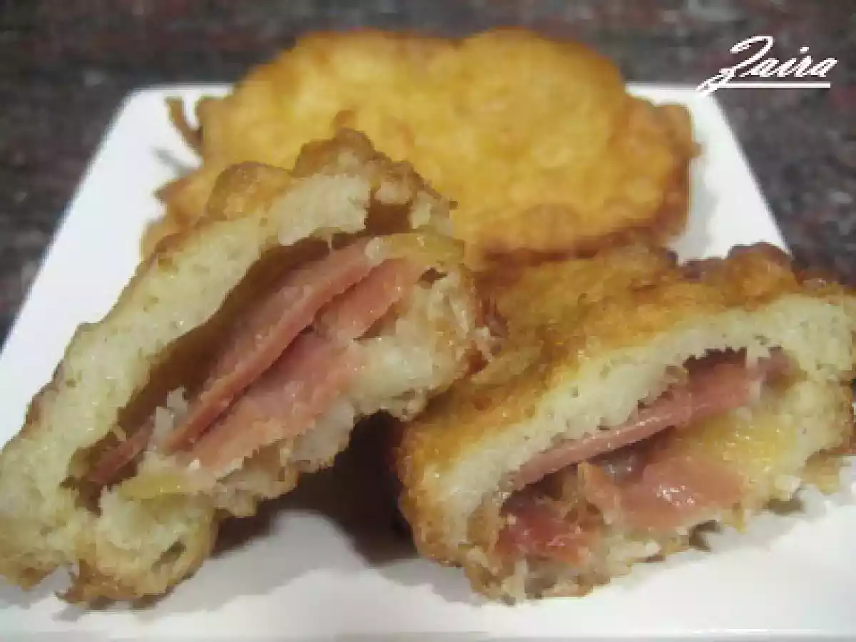 Deliciosos emparedados de jamón serrano AnteriorSiguiente OtroFácil19 min422 Kcal Enviar esta receta a un amigo Imprimir esta página Preguntar al autor Publicar la foto de esta receta Forma y ésthétique, todavía exquisita. Ingredientes 6 8 rebanadas de pan 18 lonchitas de buen jamón serrano leche huevo batido abundante aceite Costo estimado: 22.99Euros€ (3.83€/porción)
