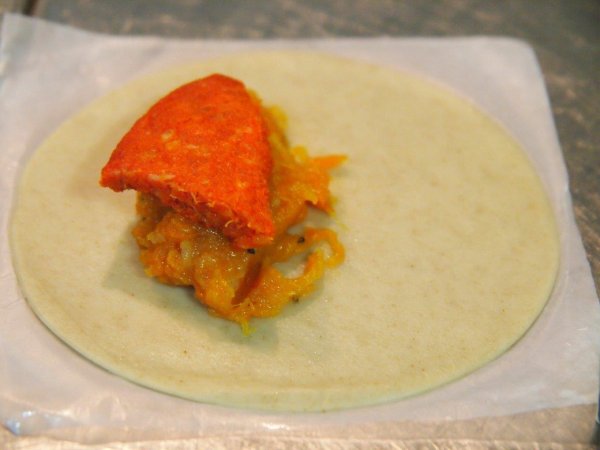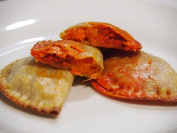 Empanadillas de calabaza y sobrasada AnteriorSiguiente OtroFácil1 hora Enviar esta receta a un amigo Imprimir esta página Preguntar al autor Publicar la foto de esta receta Empanadillas rellenas de crema densa y dulce de calabaza y sobrasada . Ingredientes 5 500 gr. de calabaza 1 patata mediana sobrasada mallorquina obleas de empanadillas miel y pimienta