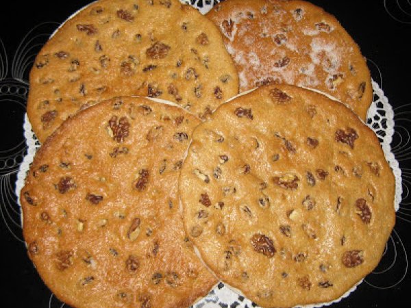 Escudellaes de panses i anous AnteriorSiguiente OtroFácil1 h 10 m Enviar esta receta a un amigo Imprimir esta página Preguntar al autor Publicar la foto de esta receta Ingredientes 6 125 azúcar 150 ml leche vegetal 80 ml aceite de girasol 40-50 gr Nueces peladas 40-50 gr Pasas pequeñas 50 gr almendra molida o entera 225 gr Harina de trigo blanca o integral o a medias Ralladura de 1 limón Una pizca de canela 1 huevo de mentiras Levadura química para 250 gr de harina