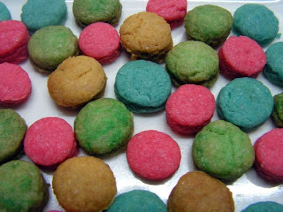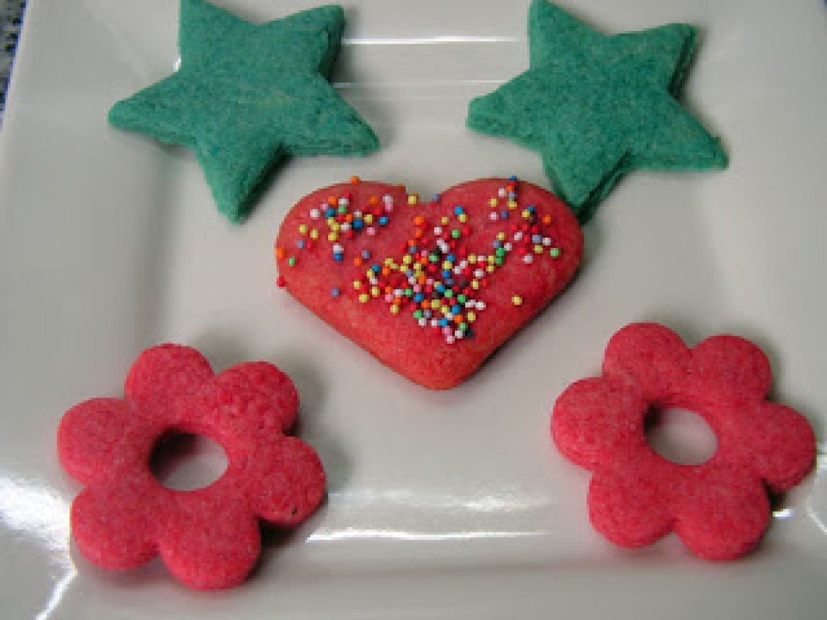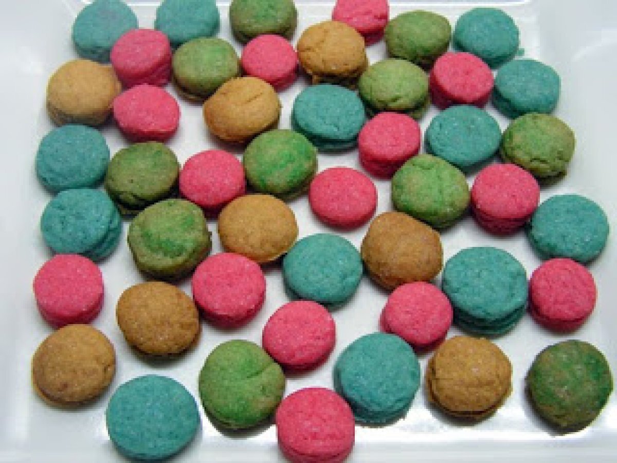 Enfornem a 180º uns 10 - 15 minuts, vigilant no es daurin, sinó s'espatlla el color. - Quan son fredes preparem una mena de "pega" barrejant sucre fi i unes gotetes d'aigua. Pintem sobre les galetes amb aquest preparat i ràpidament decorem amb boletes de color.
