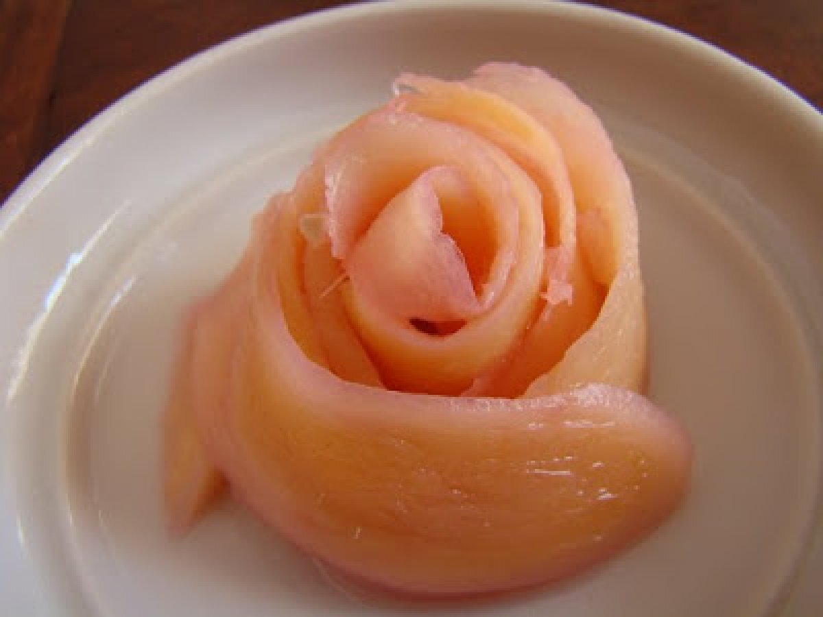 Gari (pickle de jengibre) AnteriorSiguiente OtroFácil45 min156 Kcal Enviar esta receta a un amigo Imprimir esta página Preguntar al autor Publicar la foto de esta receta Ingredientes 1 1/2 jengibre fresco 1/2 taza de vinagre de arroz 2 cucharadas de azúcar 1 cucharadita de sal una gota de colorante rojo o rosado Costo estimado: 0.47Euros€ (0.47€/porción)