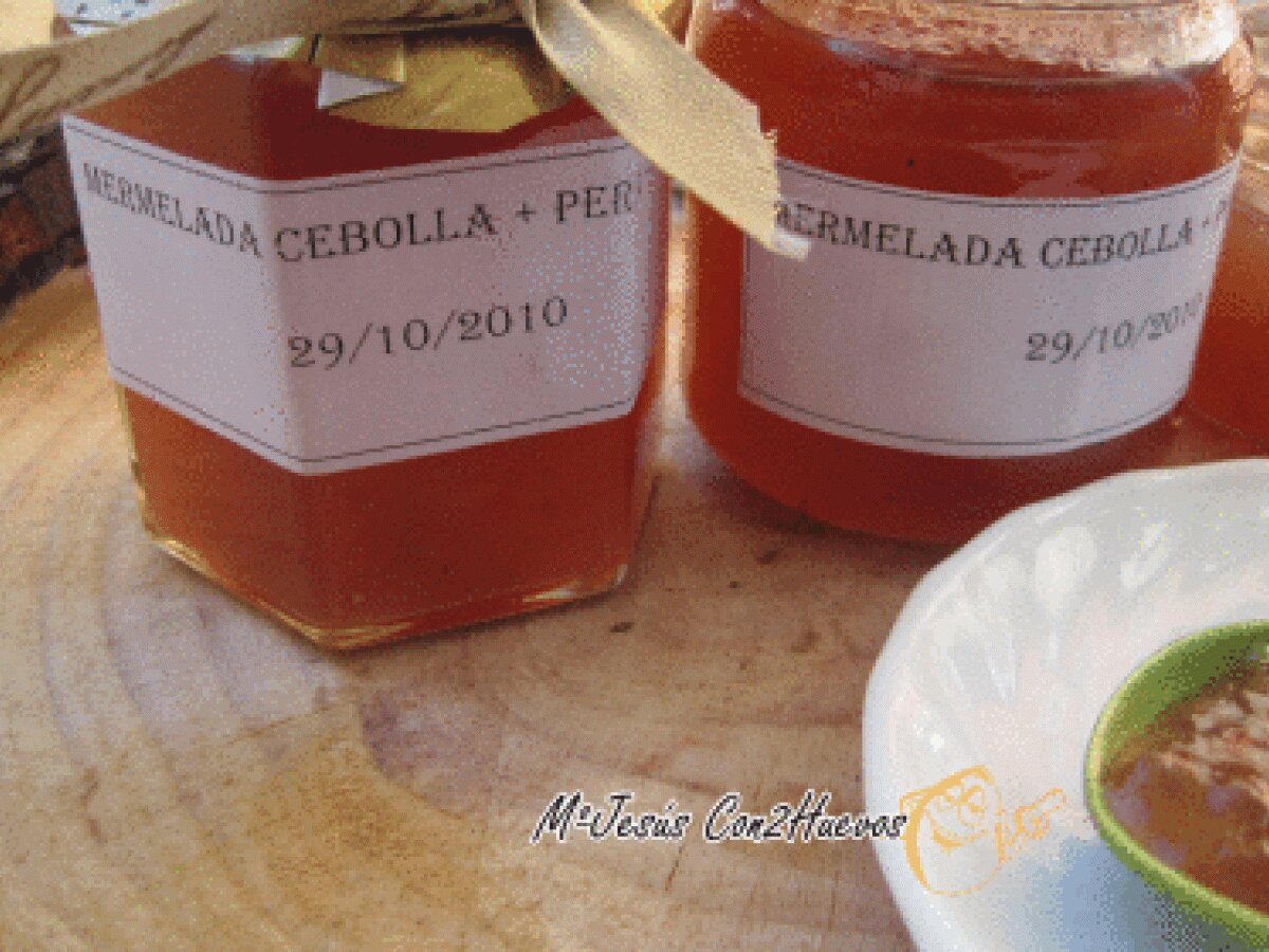 Mermelada de cebolla, pera y uva AnteriorSiguiente OtroMedio1 h 45 m1571 Kcal Enviar esta receta a un amigo Imprimir esta página Preguntar al autor Publicar la foto de esta receta Ingredientes 2 Ingredientes: 400g de cebolla morada 400g de pera 200g de uva 650g de azúcar El jugo de un limón 1cucharadita de jengibre molido y pimienta Costo estimado: 3.25Euros€ (1.63€/porción)