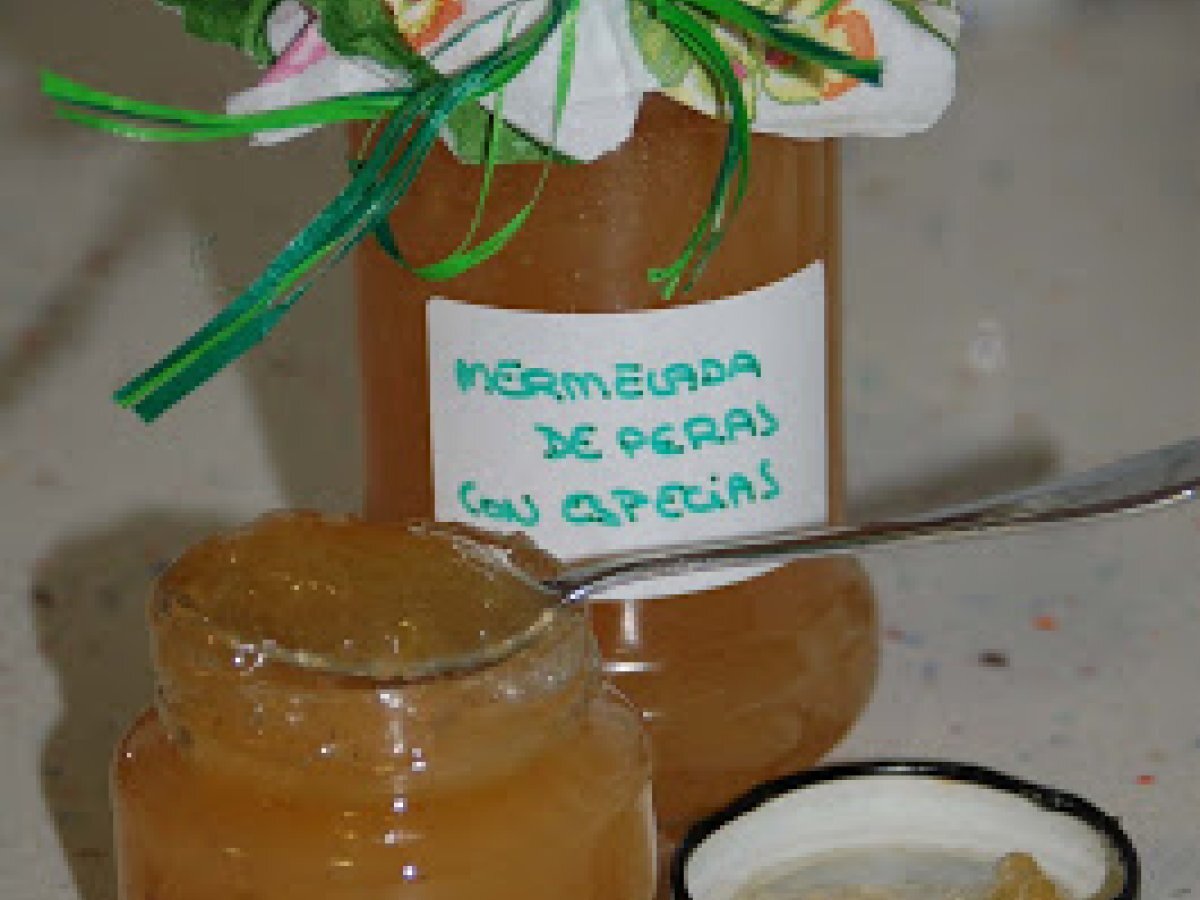 Mermelada de peras con especias. éxito total de laura en jaén OtroFácil35 min Enviar esta receta a un amigo Imprimir esta página Preguntar al autor Publicar la foto de esta receta Ingredientes 4 Medio kilo de peras, 300 gramos de azúcar, El zumo de medio limón, Un clavo de olor, La tercera parte de una vaina de vainilla.