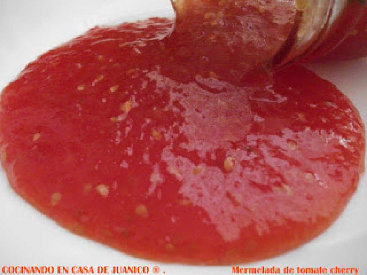 Mermelada de tomate cherry AnteriorSiguiente OtroFácil25 min73 Kcal Enviar esta receta a un amigo Imprimir esta página Preguntar al autor Publicar la foto de esta receta Ingredientes 3 575 g de tomate cherry 450 g de azúcar y el zumo de medio limón Costo estimado: 5.95Euros€ (1.98€/porción)