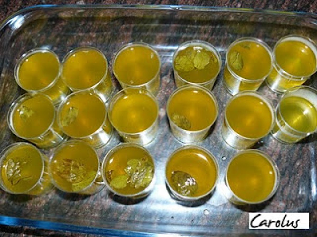 Mini gelatinas de mojito AnteriorSiguiente OtroFácil25 min Enviar esta receta a un amigo Imprimir esta página Preguntar al autor Publicar la foto de esta receta Ingredientes 2 1 sobre de gelatina de limón medio vaso de ron negro El zumo de 1 limón Hierbabuena 250 ml de agua Fanta de limón Vasos de chupito