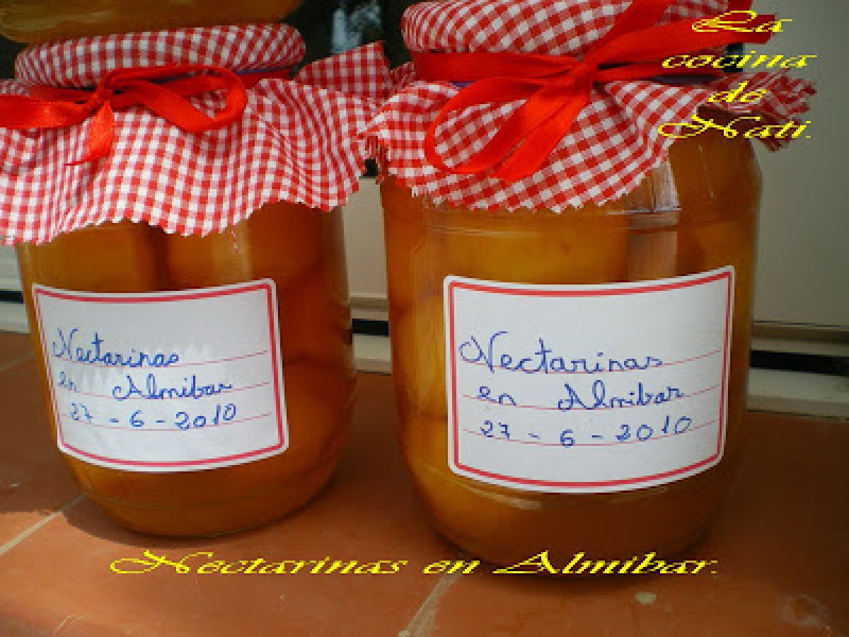 Coloca en el vaso el agua, el azúcar, la rama de vainilla abierta por la mitad si decides utilizarla y programa, 10 minutos, temperatura varoma, velocidad 1. - Pela las fresquillas o nectarinas y colócalas dentro de tarros esterilizados, presiona ligeramente los frutos hasta llenar el tarro dejando 1 centímetro del borde. Vierte el almíbar caliente sobre las nectarinas, cierra los tarros y cuécelos al baño María 20 minutos. Deja enfriar y etiqueta.