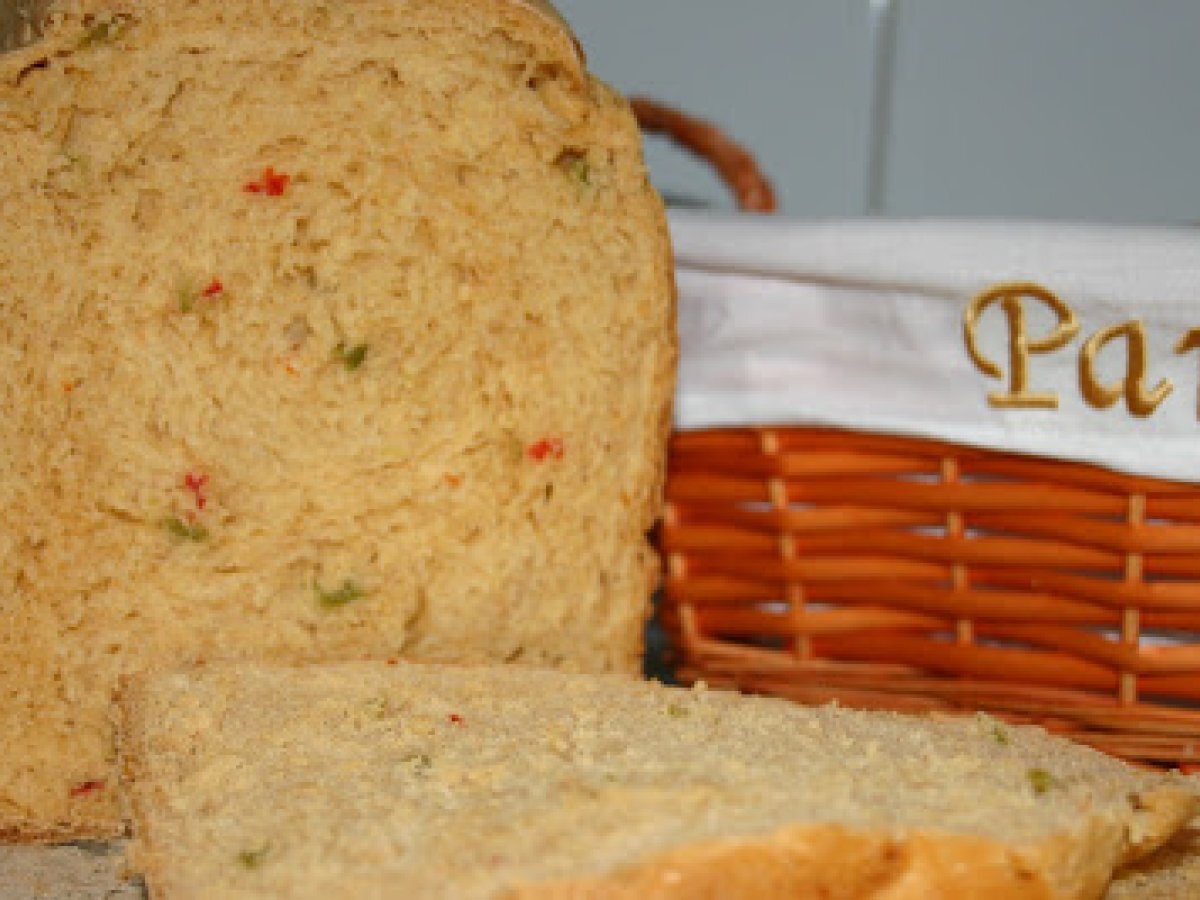 Pan de pimiento. OtroFácil35 min Enviar esta receta a un amigo Imprimir esta página Preguntar al autor Publicar la foto de esta receta Ingredientes 2 310 ml de agua 1,5 cucharada de sal 1,5 cucharada de aceite de oliva virgen extra 1,5 cucharada de pimentón 530 g de harina tipo 812 1 paquetito de levadura seca de panadería 100 g de pimientos cortados en daditos pequeños Costo estimado: 2.47Euros€ (1.24€/porción)