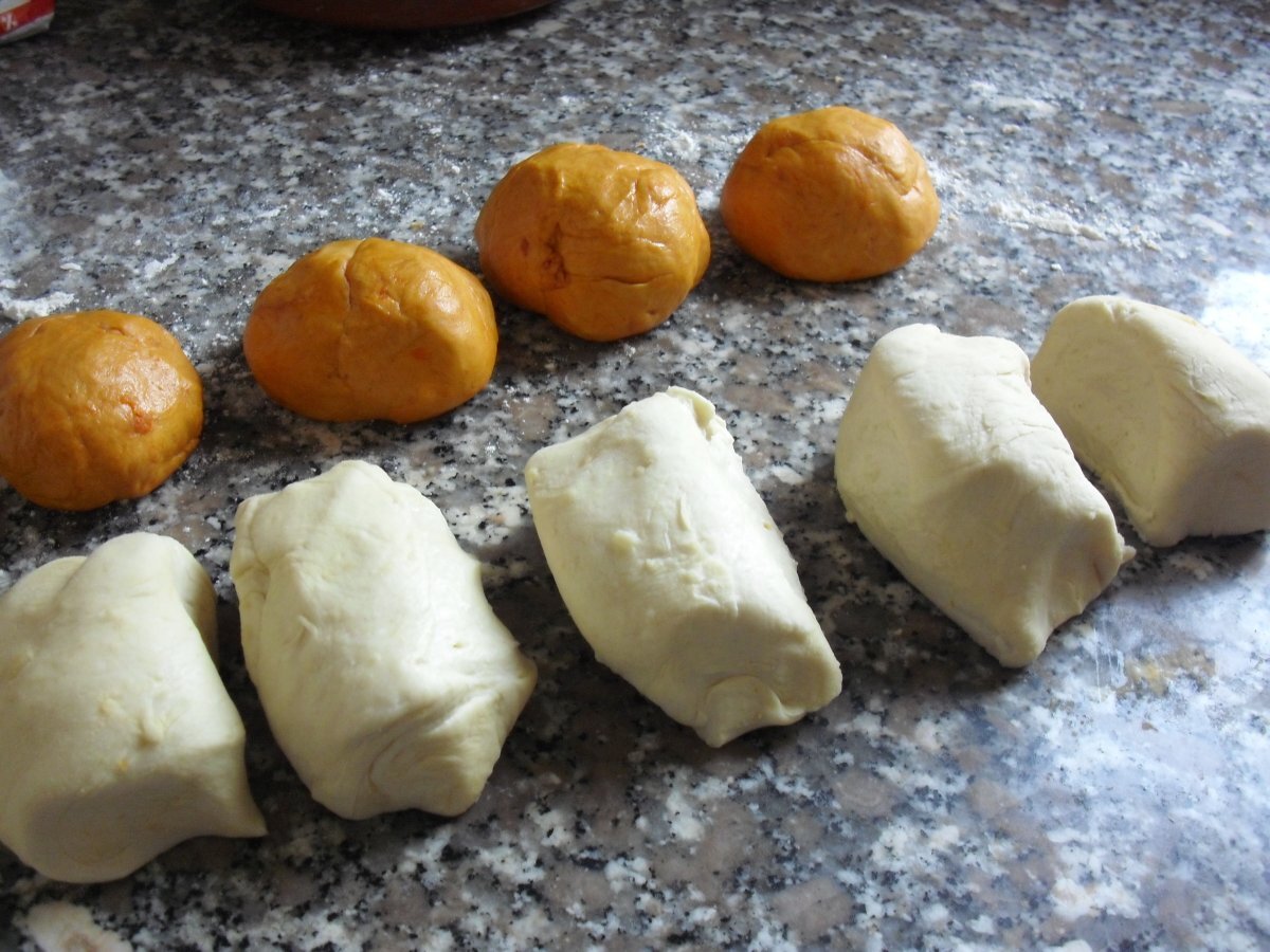 Pan de sant jordi AnteriorSiguiente OtroMedio1 h 20 m Enviar esta receta a un amigo Imprimir esta página Preguntar al autor Publicar la foto de esta receta Ingredientes 8 1 taza de agua templada (220 ml.) 2 cucharadas de aceite de oliva 1 cucharada de sal 1 cucharadita de azúcar 2 cucharadas de leche 3 tazas de harina normal (660 gr. aprox.) 7 gr. de levadura de pan seca o 17 gr. de la fresca. 3 ó 4 rodajitas de sobrasada queso rallado nueces