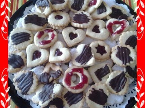 Hornee durante 10 o 12 minutos. - Cuando las pastas estén frías, vierta una cuharadita de mermelada en el centro de las pastasenteras y coloque encima la pasta recortada, presionando ligeramente espolvoree con azúcar glas y sirva.